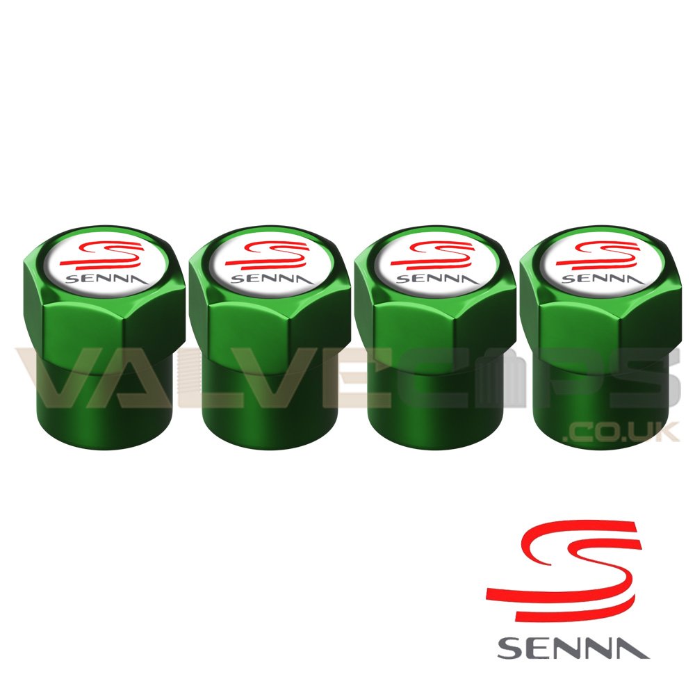 Our Senna valve caps are our personal tribute to the legend. Supplied in a pack of either two or four and available in black or green, these high quality tyre valve caps look great when fitted to your motorcycle or car and are a simple, cost effective way of showing your respect to this motorsport icon!