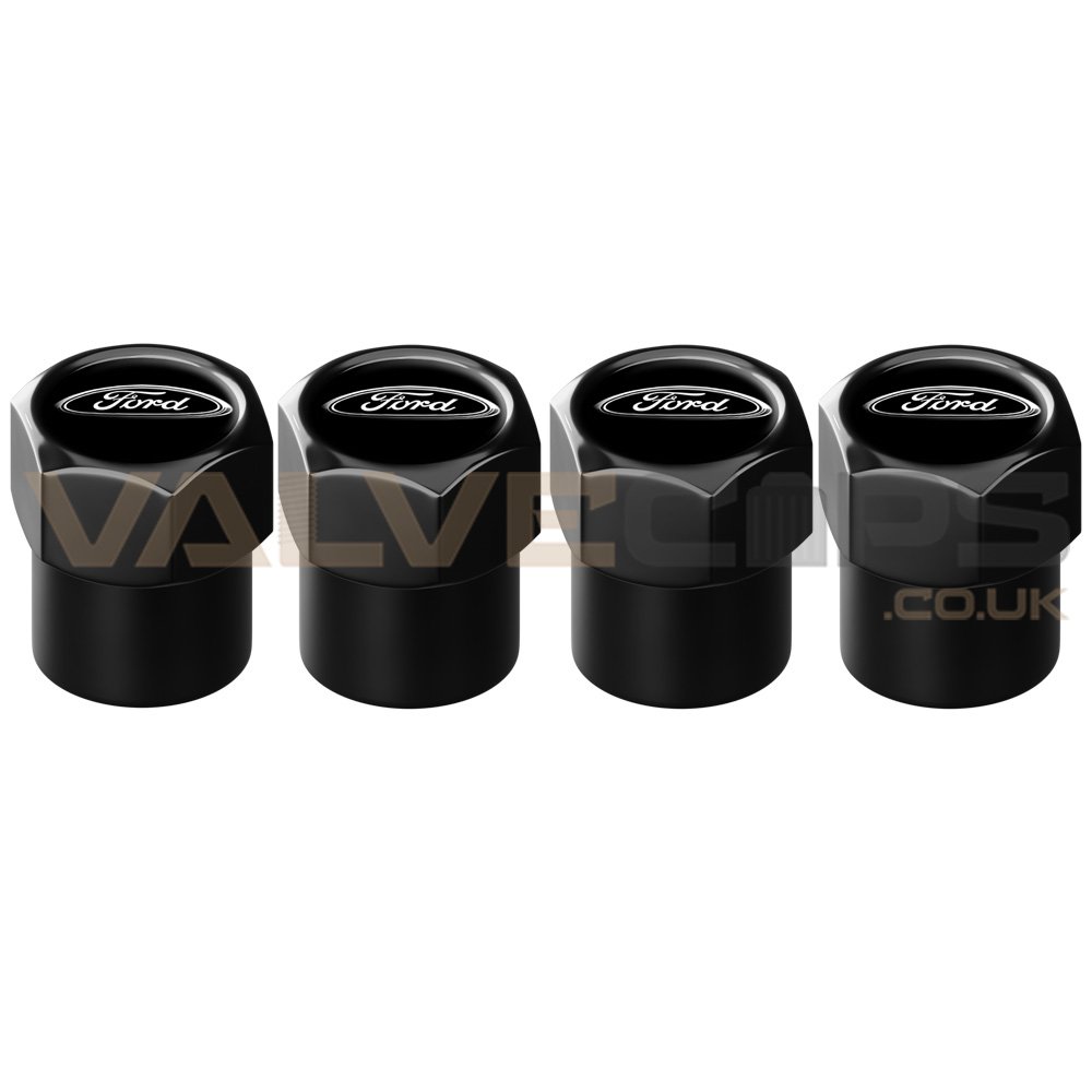Our Ford Metallic Logo Valve Caps are made from high quality lightweight alloy and feature a unique leak proof inner seal and a modern design with the famous Ford logo inlaid into the hexagonal shaped black cap. The logo itself is metallic silver so the valve caps look great, yet still subtle, in direct sunlight.
